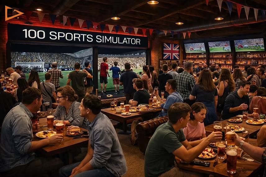 Positioning a sports simulator near a bar or café maximises commercial impact. Comfortable seating allows families to relax while staying connected to the action, and tables encourage shared dining experiences.